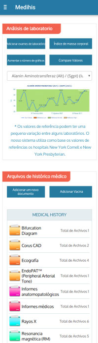 Medihis utilza uma agradável interface que permite compartilhar qualquer informação médica com seus médicos facilmente e rapidamente. Seu médico pode acessar seu passado e informações médicas atualizadas, assim, fazer comparações fáceis e avaliações rápidas.